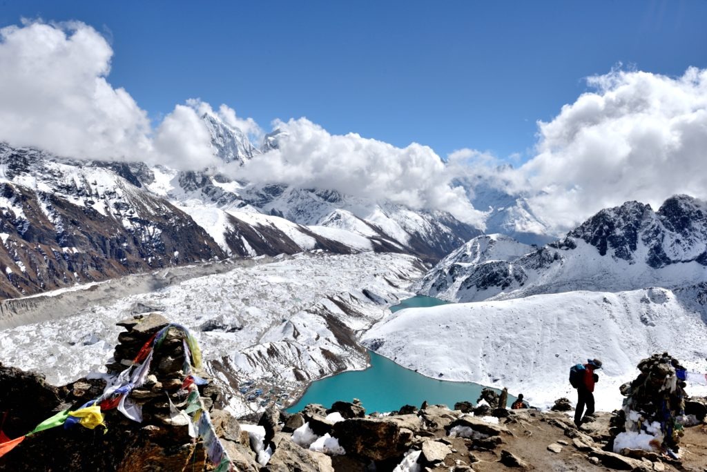 Today you will reach the highest point of the trek, which is Gokyo Ri, 5,483 meters above sea level. In the early morning, you will hike up for 3 hours, to reach Gokyo Peak. The peak above the lake offers a spectacular panoramic view of the towering peaks including Mt. Everest (8,848m), Mt. Makalu (8,485m), Mt. Lhotse (8,516m), Mt. Nuptse (7,855m), Mt. Cho-Oyu (8,201m), and more. After spending some time enjoying the surrounding beauty, you will come back to Gokyo and spend the night.